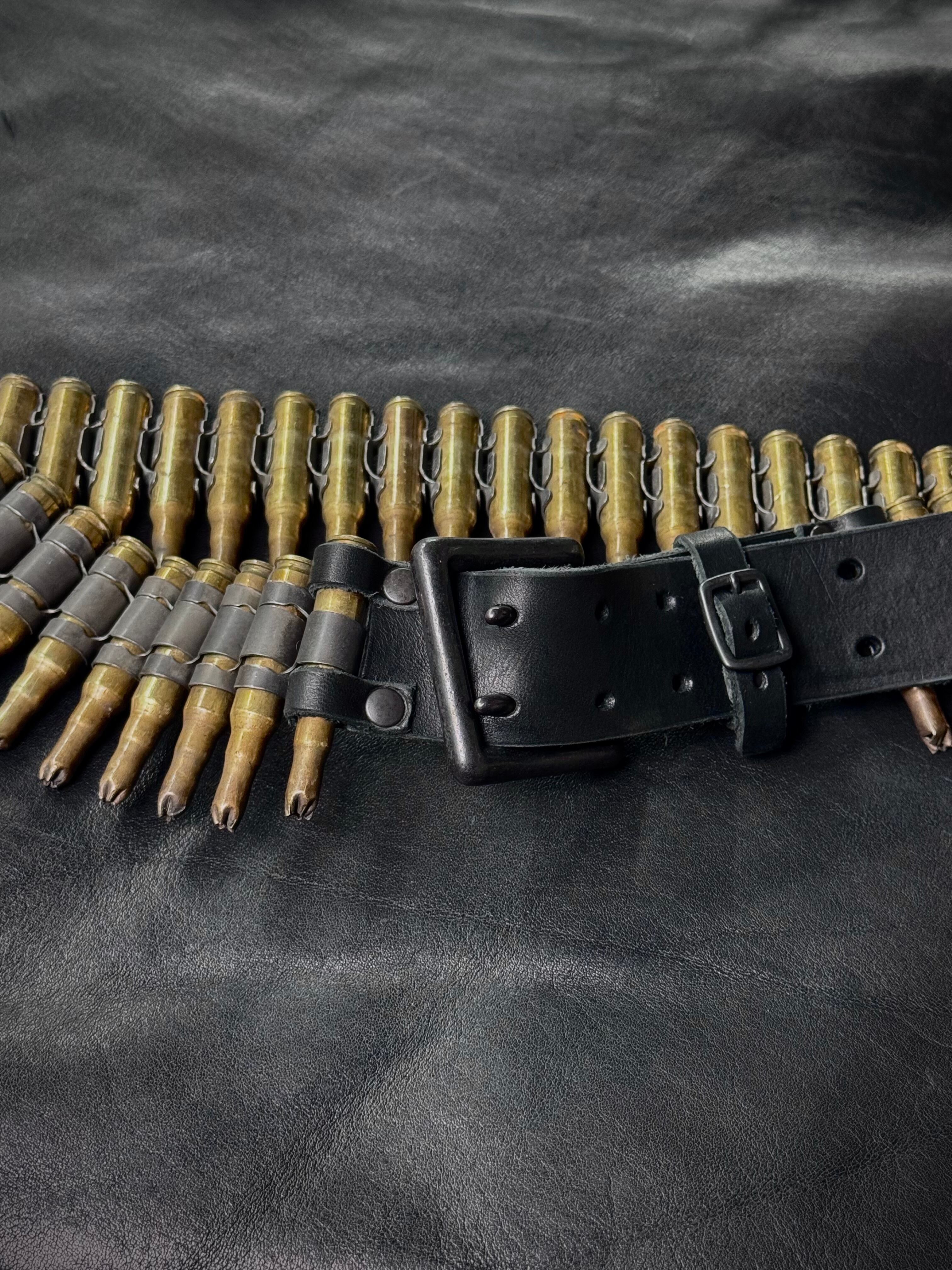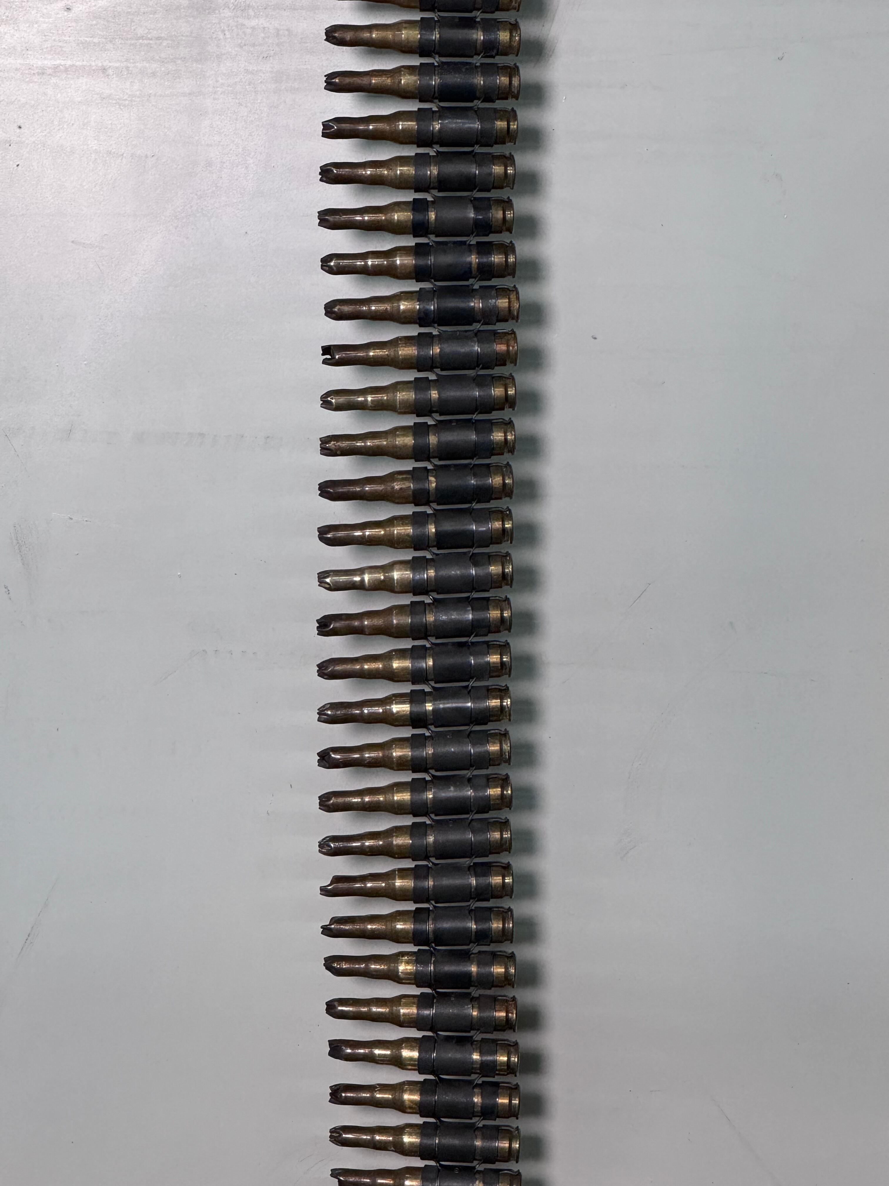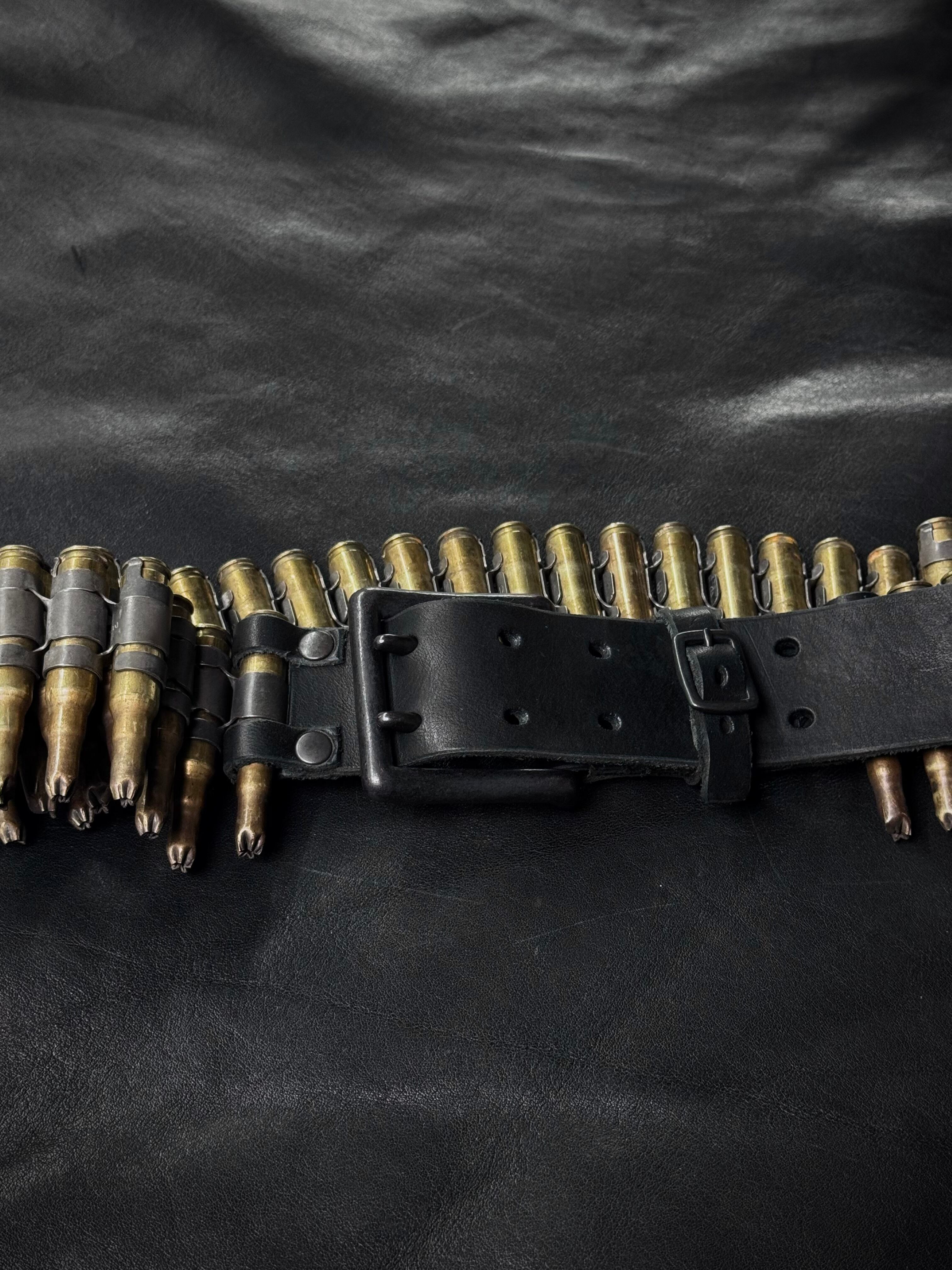 ヴィンテージの実弾を使用した弾丸ベルトになります。