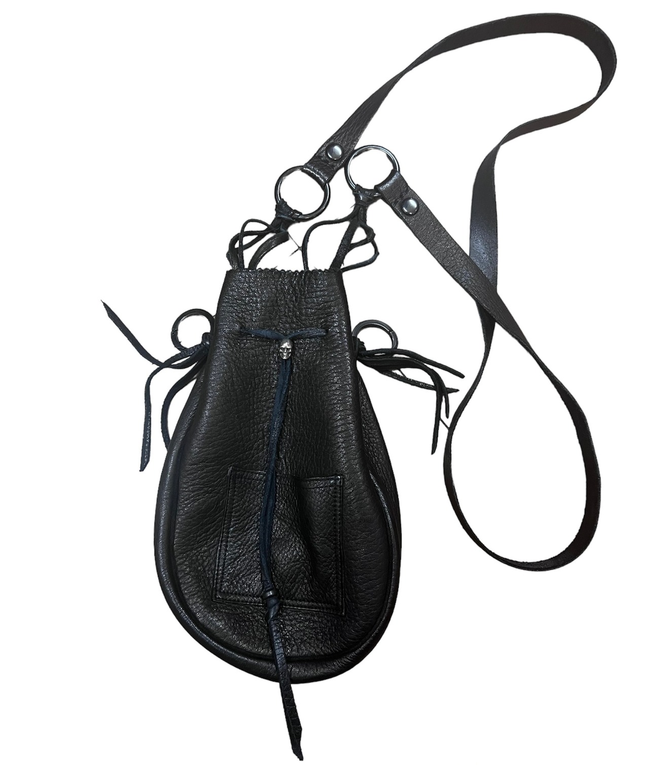 高級皮革鹿革の巾着型ポーチ